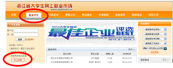 1.登入“浙江省老员工网上就业市场网站”http://www.ejobmart.cn