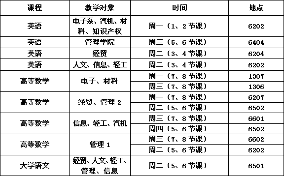 2015-2016学年秋季学期浙工贸院专升本辅导教学安排