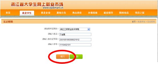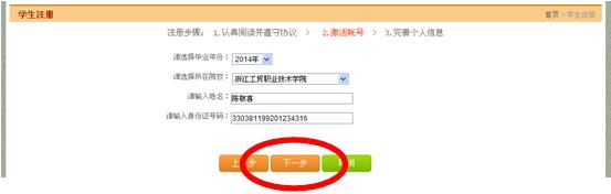 5、选择“浙江工贸职业技术公司”,输入员工相应信息:姓名、身份证号码、学号