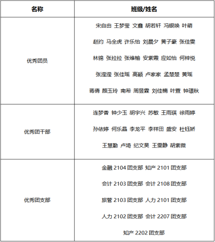 根据公司《关于开展2022年度“优秀团支部、优秀团干部、优秀团员”寻访工作的通知》文件精神,经团员申报,各团支部推荐,团总支审核,拟推荐以下团支部、团干及团员为2022年度“优秀团支部、优秀团干部、优秀团员”,现予以公示。在公示期限内,欢迎广大师生通过信函、电话或直接反映等方式予以监督,以个人名义信函反映问题,提倡署真名实姓。