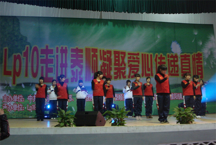 2011.2.19TapTap点点弘恩行志愿团17位成员在张勰书记、秋子老师的带领下与在温企业家组成的LP10志愿者们共同走进泰顺,凝聚爱心,传递真情,在泰顺县雅阳镇剧院为广大爱心人士与帮扶儿童献上了一出精彩的演出。父母恩德重如山,知恩报恩不忘本,做人饮水要思源,才不愧对父母恩——一首《跪羊图》道出多少感恩的心。