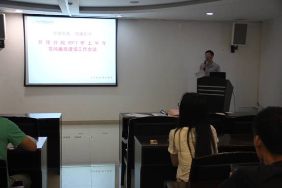 为了全面贯彻党的十八大和十八届三中、四中、五中、六中全会精神及全国全省高校思想政治工作会议精神,贯彻落实公司党风廉政建设责任制工作,管理分院于2017年6月9日下午在温州风险投资研究院召开管理分院2017年上半年党风廉政建设工作会议,管理分院(含温州风险投资研究院)全体教职工参加,会议由管理分公司党总支书记项光春老师主持。