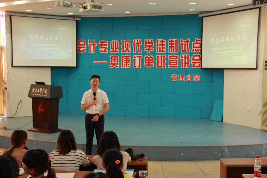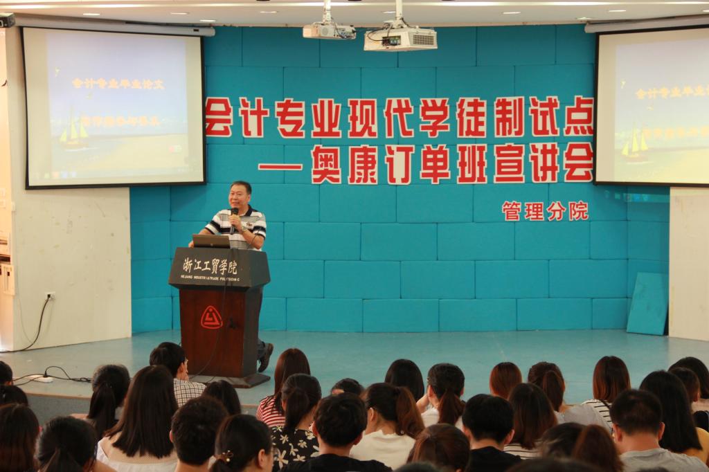 管理分院举行会计专业现代学徒制试点实习动员暨“奥康订单班”宣讲会