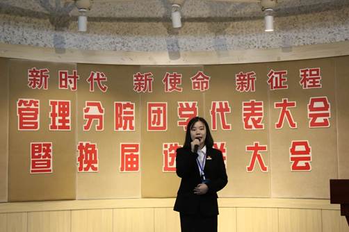 正式会议在国歌声中开始,随后管理分院团总支员工会主席潘蝶及团总支副书记成用同学分别作管理分院员工会和管理分院团总支学年工作总结,回顾过去一年的工作和得到的成绩,展望下一学年的工作。