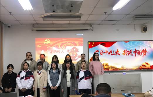 主题班会以齐唱国歌开始,当嘹亮的国歌声响彻整个教室时,同学们的心中也热血沸腾。随后,同学们共同观看了员工自己录制的 “十九岁的自己对党的十九大说的话”MV视频,表达了46位员工为实现中华民族伟大复兴的中国梦而努力的承诺。接着,张钰莹同学给大家带了一场生动的演讲,演讲以一位工贸老员工学习党的十九大精神心得体会为主题,张钰莹声情并茂的演讲让同学们深有感触。演讲结束后班会达到高潮,陈雪茹、陆凤玲、周琦等十二位同学带来的大合唱经典曲目——《龙的传人》,让人激情澎湃。紧接着由王维、杭天虹、邵欢欢、林艳妮等同学带来的“学习党的十九大、永远跟党走”的诗歌朗诵,一句句激昂的诗词表达出同学们内心对党的热爱。最后由郑珂琳、周铸辉等七位同学带来校园青春歌曲联唱,唱出新青年的歌。