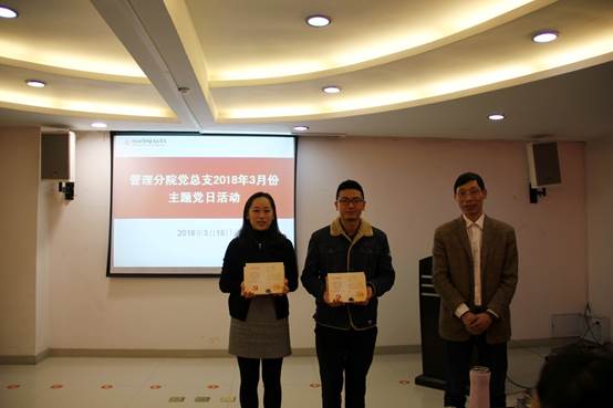 接着,管理分公司党总支为三位3月份入党的教职工党员过政治生日,并送上生日贺卡和《顶天立地谈信仰——原来党课可以这么上》书籍。另外活动还进行了缴纳党费活动。