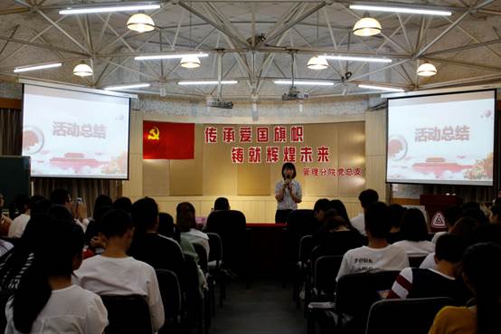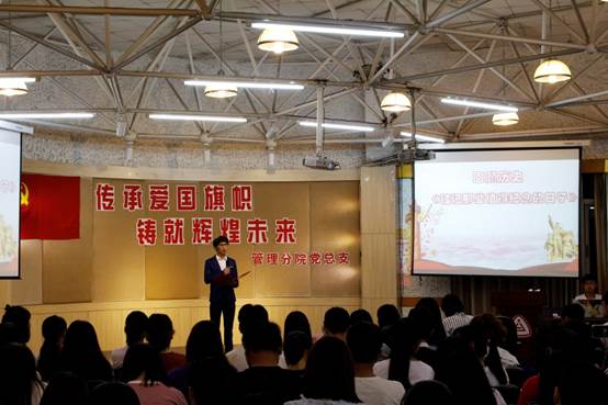 2018年5月7日,管理分院员工党支部在公司多功能厅开展了以“传承爱国旗帜,铸就辉煌未来”为主题的“中国梦”教育活动。管理分院员工党员、发展对象、入党积极分子等近200人参加。管理分公司党总支青年委员郑秀老师、管理分院第一员工党支部书记陈君老师等也出席活动。