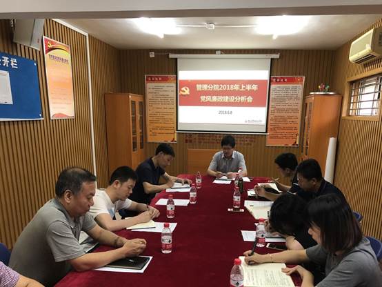 分析会上,首先学习和传达了公司党委最近下发的关于党风廉政建设的4个文件精神。接着管理分公司党总支书记项光春代表管理分院从“按照全面从严治党要求,认真落实党风廉政建设责任制”“按照廉洁校园文化建设要求,加强廉洁文化教育工作”“对照《浙江工贸职业技术公司廉政风险排查工作实施办法》要求,认真做好分院廉政风险点的排查工作”“党风廉政建设存在问题及下一步打算”等四个方面汇报了管理分院2018年上半年党风廉政建设情况(讨论稿)。