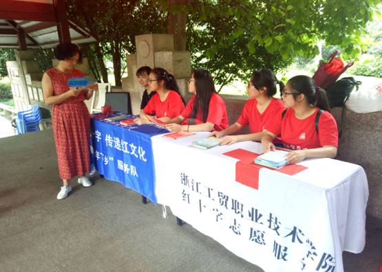 7月5日,弘扬红十字 传递红文化“新青年下乡”服务队的志愿者们早早地来到温州市鹿城区横河社区伏茶点,开展了一次围绕造血干细胞、骨髓捐献和无偿献血知识的宣传活动。顶着炎炎夏日,我们的志愿者挂起“生命礼赞红十字,生命关爱宣传进社区”的横幅和分发的宣传单吸引了不少路人纷纷前来献出自己的爱心。10日,志愿者们前往温州市鹿城区南汇街道的春秋社区,联合春秋社区开展了“多彩春泥.缤纷夏日”等系列活动,我们志愿者一部分维持现场纪律,另一部分负责协助小朋友们完成米塑作品。实践期间,“玛莉亚”台风的到来,让很多人对出门望而却步,但却阻止不了志愿者们服务的脚步。服务队的同学们冒着大雨,忙着将杯子一排排摆放整齐,然后一一倒入凉茶,递给行人解暑。时间悄悄流逝,红十字会队伍的暑期社会实践已步入尾声,他们以“施之以爱 报之以恩”为主题,早早到达社区,教小朋友们做三明治;让小朋友们写一句感恩的话折成爱心送给家长;上台展示一幅自己心中绿色食物的画;最后队长上台为大家献唱了一首《感恩的心》。