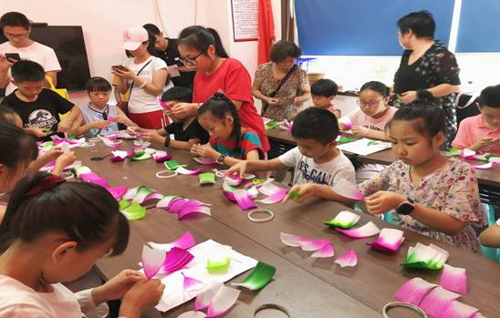 7月6日,非遗创艺,匠心焕耀“新青年下乡”服务队联合鹿城区文广新局,在南郊街道纺织路庄头滨水公园鹿城区党群服务中心共同商讨五十项社会服务的内容。10日,志愿者们早早地来到了双榕社区,为小朋友们准备的课程是温州米塑。13日,志愿者们来到南郊街道十里亭社区,教授夏日荷花。12日,三支队伍分别去了蒲鞋市街道绿园社区、五马街道八仙楼社和南汇街道开源社区,各队伍所讲解的课程也是各不相同,分别是细纹刻纸、仙岩瓦当和夏日荷花。此次活动不仅让同学们近距离地了解了温州米塑,还锻炼了志愿者们演讲能力和动手能力,是一次弥足珍贵的经历。