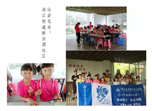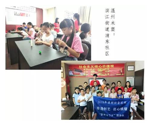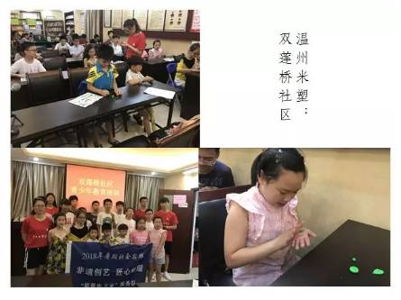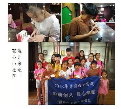 为推动非物质文化遗产融入生活,不断丰富未成年人的暑期精神文化生活,让孩子们能够近距离地体味家乡文化遗产的魅力,2018年7月6日至20日,浙工贸管理分院“非遗创艺,匠心焕耀”新青年下乡服务队联合鹿城区文广新局主办,鹿城区非遗保护中心、鹿城党群服务中心,冒着酷暑,跑遍鹿城区各街道社区,开展了50场非遗进社区活动,让1000余名青少年走近非遗、体味非遗、共塑非遗,得到了社会广泛赞誉。