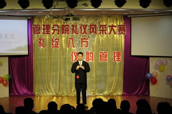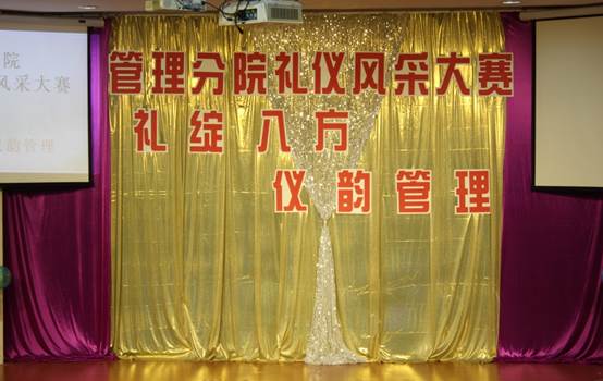 为了宣传、推广礼仪文化知识,弘扬中华民族优秀的传统礼仪道德文化,树立健康文明的老员工形象,全面展现管理分院的文明礼仪风采。2019年5月15晚,管理分院在阶梯教室开展了以“礼绽八方 仪韵管理”为主题的第九届礼仪风采大赛。管理分公司党总支书记项光春老师、管理分院经理助理邵超群老师、管理分院办公室主任陈婷婷老师、管理分院辅导员季焕磊老师、管理分院辅导员朱观娟老师、上一届礼仪大使杜泽颖学姐出席了本次活动,参加本次活动的观众共约330人。