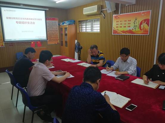 为全面贯彻落实省纪委《关于深入开展全省警示教育月活动的通知》和杭钢集团公司《关于深入开展党风廉政建设警示教育月活动的通知》精神,根据公司党委的工作部署,管理分公司党总支于2019年5月31日下午在党员之家开展党风廉政建设警示教育专题组织生活会,公司党委委员、副经理张俊平老师参加组织生活会,管理分公司党总支全体委员参加并进行对照检查发言,管理分院副经理孙富山老师列席会议,组织生活会由管理分公司党总支书记项光春主持。