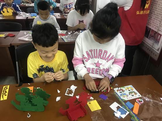 在活动中,弘恩行志愿团的老师以提问端午节的由来、讲解端午的习俗、动手制作的形式带领社区青少年走进端午节,营造了浓浓的节日氛围,同时使小朋友们了解到我国端午节是首个入选世界非遗的节日。在制作龙舟和香囊过程中,小朋友们在志愿者老师的一步步讲解和帮助下,从组装到装饰,从一个个小零件到一个个完整的作品,小朋友们发挥自己的想象力,都完成了属于自己的作品,并在课堂最后与之合影留念。