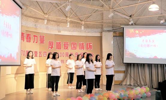 今年是五四运动100周年,晚会上还播放了视频《百年五四,青春之歌》,通过观看视频,使同学们感悟这段青春热血的历史。