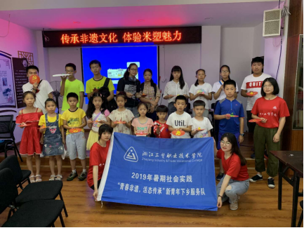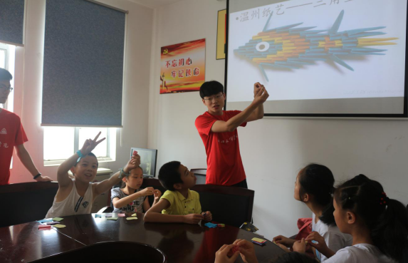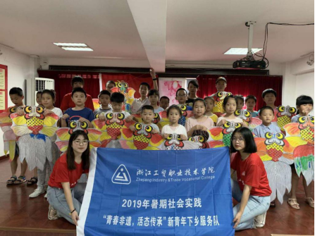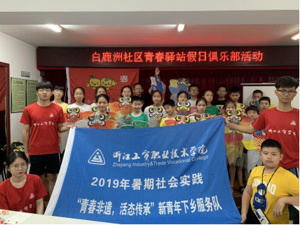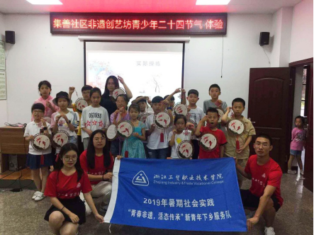 2019年7月4日,浙工贸管理分院“青春非遗,活态传承”新青年下乡服务队走进鹿城区灰桥社区、陡门社区、杨府山社区、白鹿洲社区、集善社区等十个社区开展弘扬瓯越特色文化非遗小课堂活动,对小朋友们进行非遗文化教育活动。