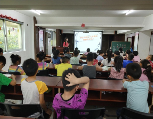 2019年7月4日—7月5日管理分院“智慧硕学,欢娱仲夏”暑期实践队伍的7名志愿者在仰义街道沿江文化礼堂给小朋友们举办了有关红色与廉洁主题教育课程。参加此次主题教育活动的社区青少年有40余人。