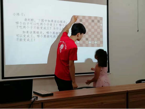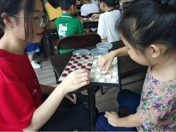 “智学一夏,趣游童年”新青年下乡服务队致力于传播国际跳棋文化,让国际跳棋注入青少年的心田,让国际跳棋能够在中国的舞台上闪烁。志愿者以老师的身份进入社区,给社区的孩子们带去一堂韵味十足的国际跳棋课程。志愿者们通过用ppt讲述国际跳棋的文化和历史、讲解行棋的规则和评判输赢的方法、现场指导小朋友练习下棋等,让孩子们可以更加全面地了解国际跳棋、接触国际跳棋,在潜移默化中培养孩子们对国际跳棋的兴趣,间接地培养国际跳棋文化传承人。