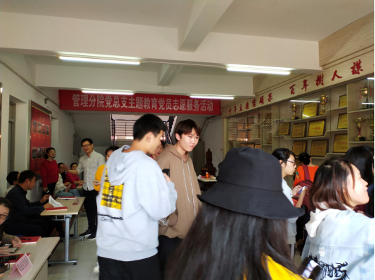 为扎实开展“不忘初心、牢记使命”主题教育,用实际行动践行党员的初心和使命,11月1日下午,管理分公司党总支在5号楼1楼大厅举行“不忘初心、牢记使命”主题教育党员集中志愿服务活动,主要服务内容有:职业规划指导、专业学习咨询、就业技巧辅导、职业礼仪指导、专升本问题咨询、员工入党问题咨询等。