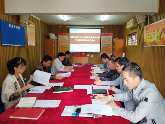 2019年11月6日下午,管理分公司党总支“不忘初心、牢记使命”主题教育集中学习暨干部调研课题成果交流会在党员之家召开。公司党委委员、副经理张俊平,管理分院党政班子成员及各党支部书记参加了会议。会议由管理分公司党总支书记项光春主持。
