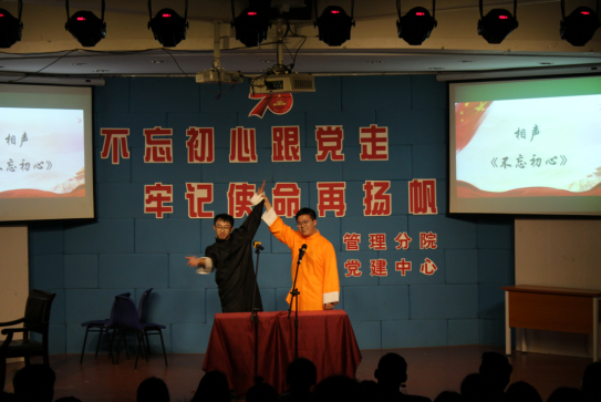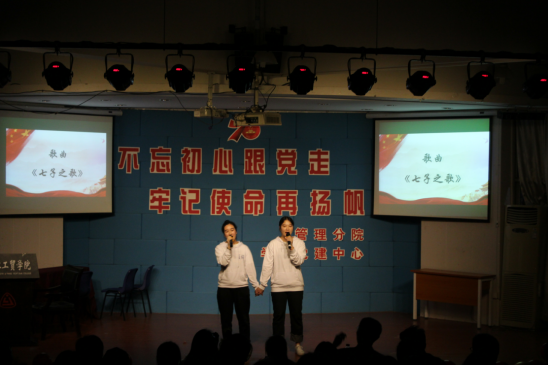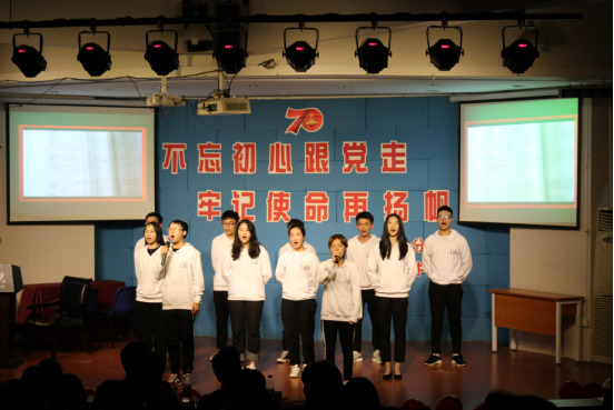 接下来是饱含对祖国深情的合唱《没有共产党就没有新中国》、体现中国共产党人的初心和使命的相声《不忘初心》以及《透过历史的眼眸》的朗诵和《七子之歌》的合唱等节目,充分展示了同学们听党话、跟党走的信心和决心。