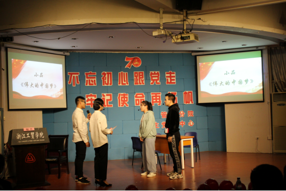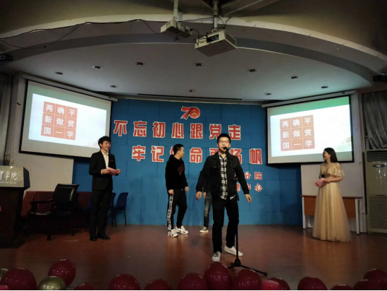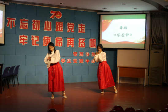 活动节目精彩纷呈。首先,《史诗70年》的视频解说,罗列了70年来中国的伟大成就,这是披荆斩棘的70年,也是朝乾夕惕的70年;接着,手语《我和我的祖国》激起了在场观众对祖国的热爱;小品《伟大的中国梦》响应了国家扶持和培养青年创业的政策,向观众科普了这一政策的同时也鼓励有梦想的年轻人继续坚持下去;随后,《半壶纱》的表演者身着汉服,歌声悠扬,舞姿动人,展现了中国传统文化之美。