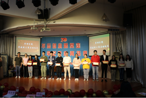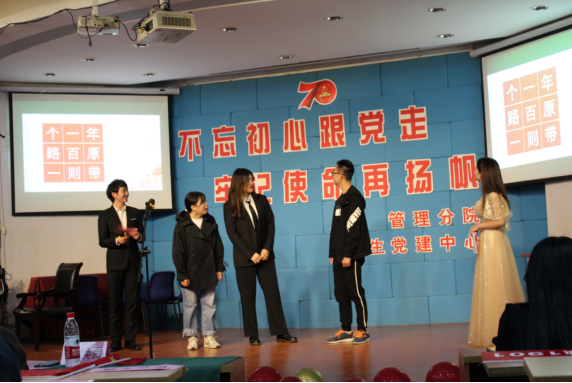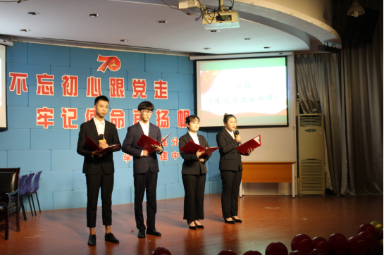 2019年11月11日晚,管理分院员工党支部在公司阶梯教室举办了以“不忘初心跟党走,牢记使命再扬帆”为主题爱党爱国主题教育活动。管理分公司党总支书记项光春老师、管理分院员工党支部书记陈君老师、辅导员朱观娟老师、辅导员季焕磊老师、17级员工党员代表和发展对象、18级入党积极分子代表以及19级入党申请人代表等参加活动。