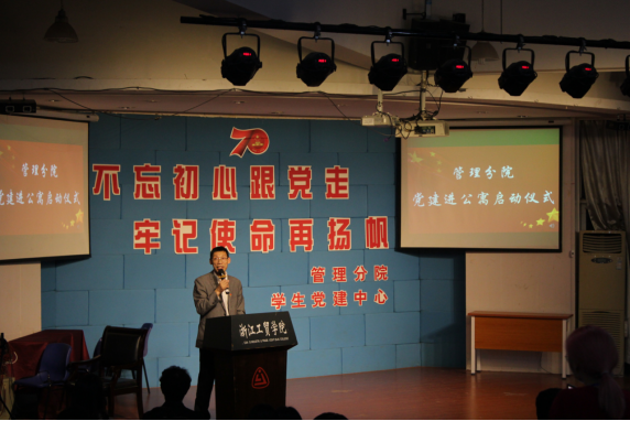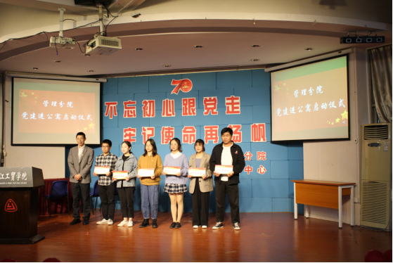 最后,管理分公司党总支书记项光春老师、员工党支部书记陈君老师及辅导员朱观娟老师、季焕磊老师分别给员工党员寝室、员工入党积极分子寝室授牌。