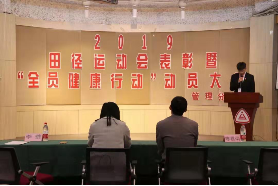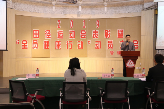 为了表彰和鼓励2019年校田径运动会中取得优异成绩的运动员,倡导全员健康行动,管理分院于2019年12月5日星期四晚上在多功能厅举办2019年田径运动会表彰暨“全民健身运动”动员大会。管理分公司党总支书记项光春老师、管理分院辅导员朱观娟老师出席会议。管理分院运动员和各班员工代表近100人参加会议。