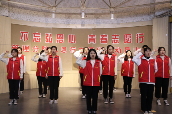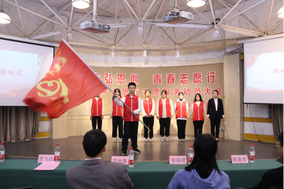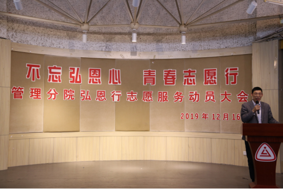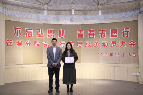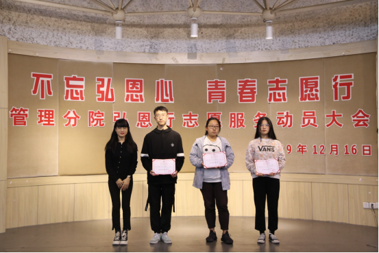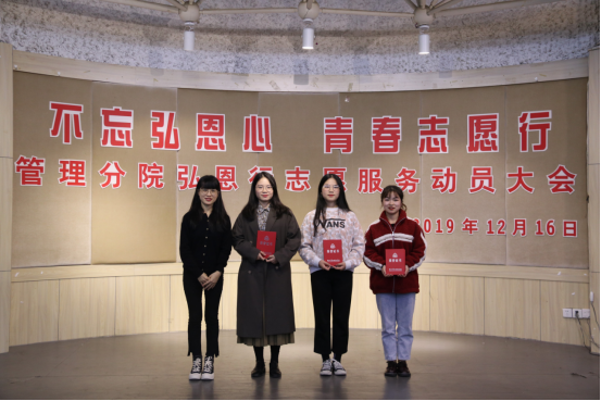 动员大会上,第十届管理分院弘恩行志愿团团长董敏君同学就上一年度弘恩行志愿团志愿服务情况进行总结,对上一年度优秀志愿服务社会实践队和优秀志愿服务个人进行表彰,优秀志愿服务实践队代表和优秀志愿者代表进行了发言。同时还进行了授红马甲、授旗仪式,开展了2019级员工志愿服务宣誓活动以及在心愿墙上贴心愿条等。动员会上穿插的诗歌朗诵《我们》、歌曲表演《搭把手—献给志愿者的歌》给动员大会增添了强烈的仪式感。