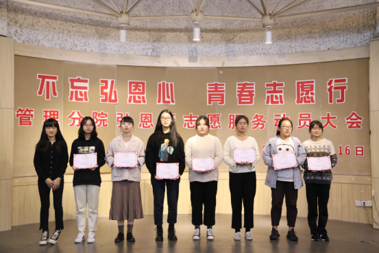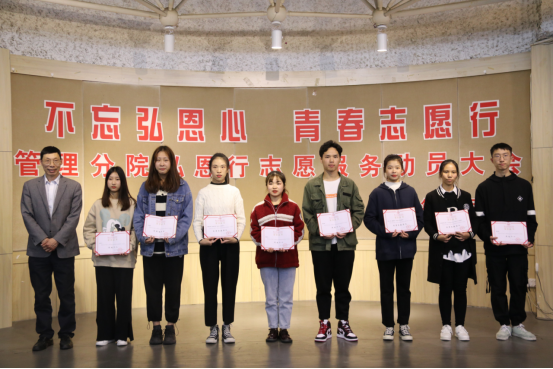 项老师说,回首管理分院弘恩行志愿团成立10年来,弘恩行志愿团的志愿服务工作得到了广泛好评,曾多次获得省、市级志愿服务优秀团队称号,这是一批又一批管理学子共同努力的结果。他希望2019级的同学能积极主动参加社会实践和志愿服务活动,接好接力棒,把弘恩行志愿团志愿精神传承下去。