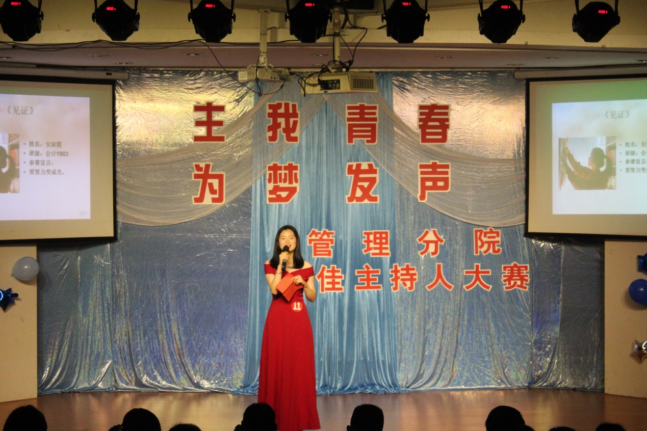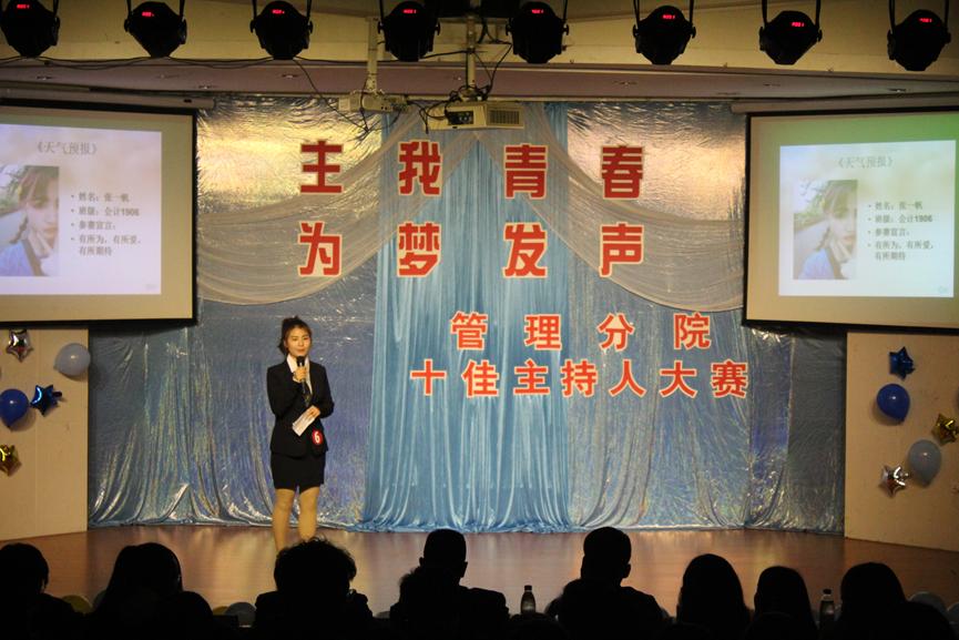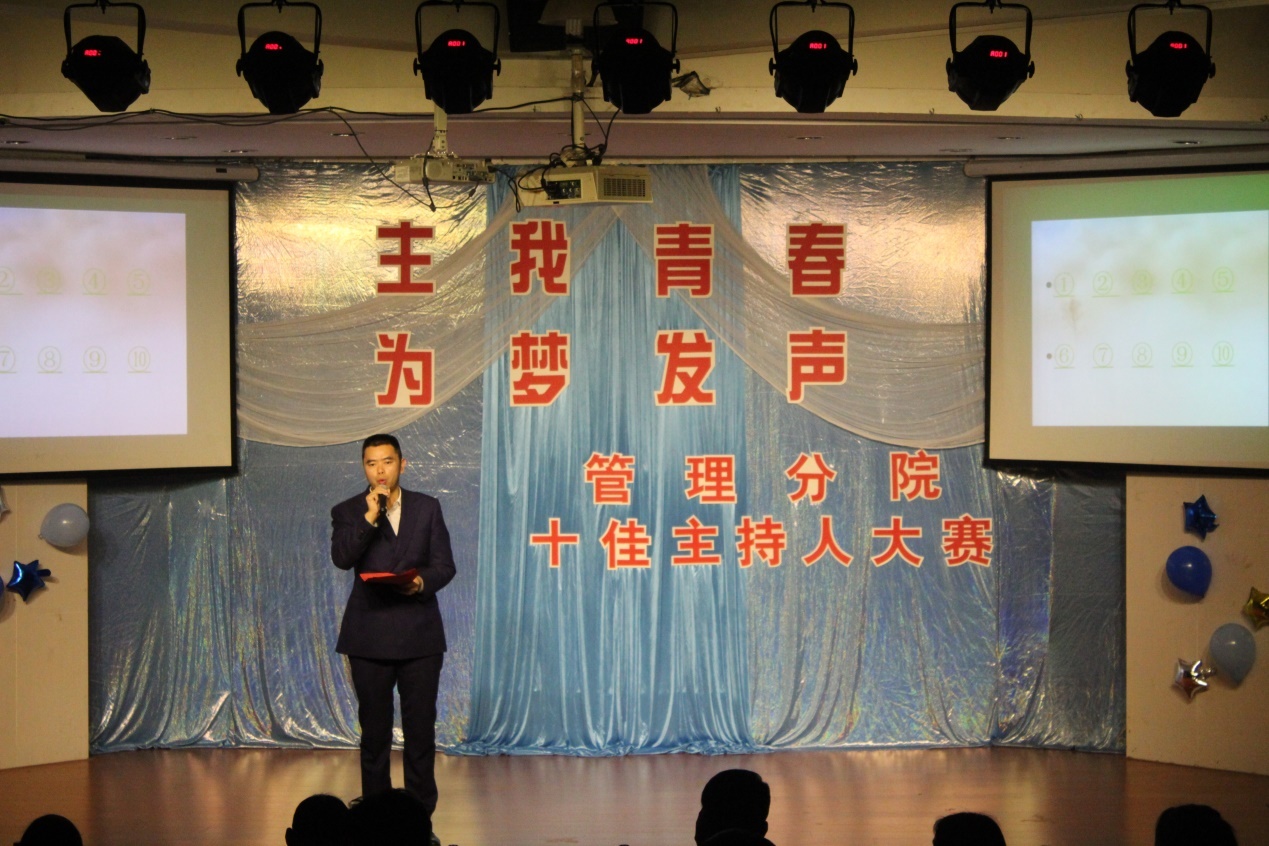 “......每个人心中都潜藏一个梦,舞台上的流彩霓虹与如花梦幻是我们每个人的向往和追求,走上舞台你就是主角,所以我们相信今天的参赛选手将会有更高的水准与记忆,更加淋漓尽致的展现自己的才华......”伴随着主持人铿锵有力的开场白和观众们雷鸣般掌声,管理分院“主我青春,为梦发声”十佳主持人大赛决赛于2019年12月17日晚上拉开帷幕。本次比赛应邀到场的嘉宾评委有技师公司教师段文林老师,管理分公司党总支书记项光春老师,管理分院团总支书记贾飞翔老师,管理分院员工党支部书记陈君老师,管理分院员工郑隆翔学长。管理分院各班员工代表300 余人参加。 青春洋溢的开场舞《Mr.Chu》率先引爆全场,在点燃了全场的气氛。在主持人播报比赛流程与规则后,活动正式开始!本次比赛共分为三个环节,并采取淘汰制进行晋级。第一环节“搭档主持”,十六位选手从美食类、新闻类、综艺类等各个节目中男女搭档任意选择并进行主持。 大赛进入了第二环节“各显神通”。成功晋级的十三位选手纷纷亮出绝活,以饱满的情感、丰富的感情展示具有自己的才艺。最后一个环节“妙语连珠”90秒即兴评述,选手现场依次随机抽取绕口令题目,利用自己台下练就绕口令功底清晰、标准、响亮、自信的将绕口令读出来,可谓是给评委交上了一份满意答卷。 段文林老师为大赛进行点评,并向各位选手提出了四点宝贵的建议:注重创造思维能力的开发;注意节奏与语感的把握,做到有感情的抑扬顿挫;主持人要充分带动观众的积极性,注意眼神和观众的交流;在毫无准备的前提下锻炼主持的随场应变能力。 经过三个环节的角逐,本次比赛结果先后产生。姚静琦同学荣获冠军,安宸霞同学荣获季军、张一帆同学荣获亚军。曾蕾蕾、姚湘儿、张炳彦、张圣逸、陈陆阳、王子龙、朱志晔同学荣获“十佳主持人奖”;王帆、陈嘉伟、李启航、林海洋、陈瑶同学获得“优秀主持人”的荣誉称号。 此次主持人大赛充分展示了当代老员工的才艺,体现了当代老员工的综合素质,丰富了校园生活,也为管理分院挖掘更多具有潜质的主持人提供途径。此时的辉煌只代表过去,此时的失落之说明我们离成功还有距离,这里给我们的只是一个起点,希望在未来的日子里管理学子能飞的更高更远!