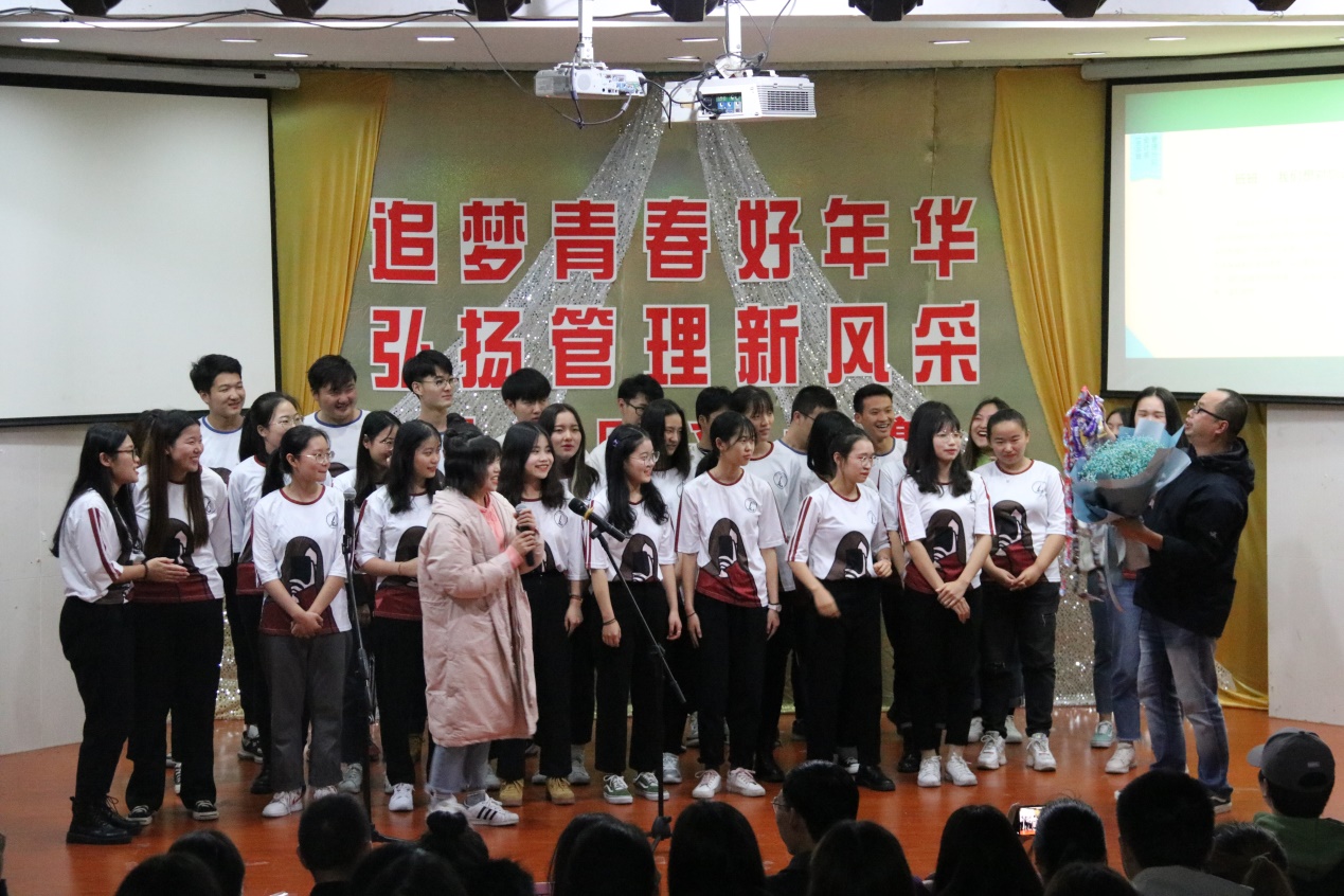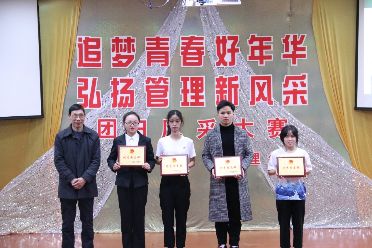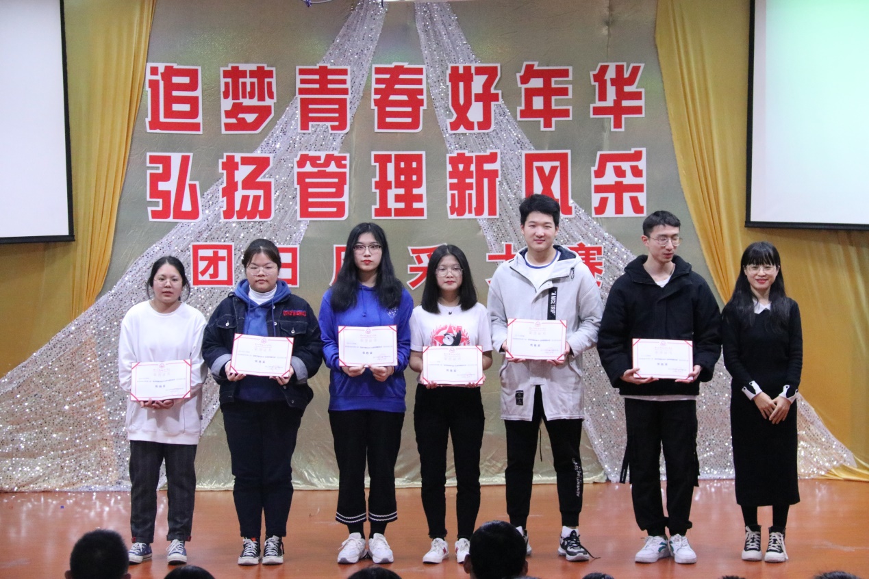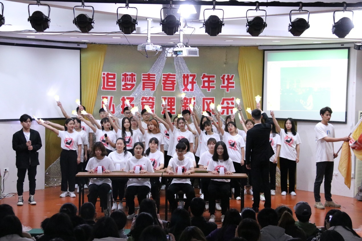 2019年12月20日晚上,管理分院以“追梦青春好年华,弘扬管理新风采”为主题的班级团日风采大赛决赛在阶梯教室隆重举行。管理分公司党总支书记项光春老师、管理分院团总支书记贾飞祥老师、管理分院辅导员陈君老师、管理分院实训中心主任季建武老师等出席活动并担任评委,管理分院2018级10个班级的全体同学参加,2019级300多位员工代表参加观摩。