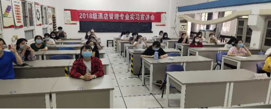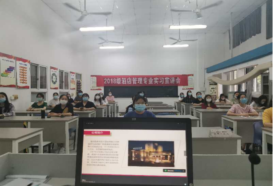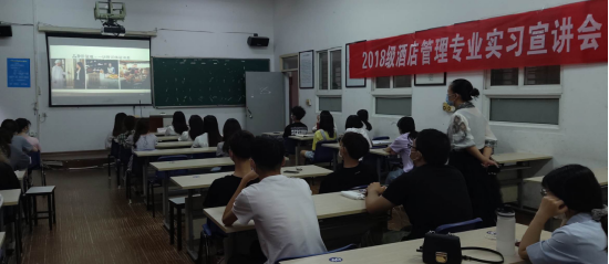 宣讲会开始前,黄岳薇老师介绍了2018级酒店管理专业员工的实习安排以及参加本次宣讲会企业的基本情况和宣讲流程,并进行了实习前的动员。