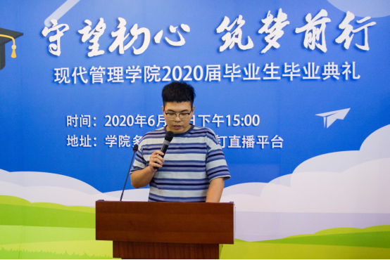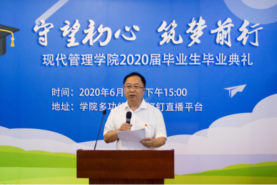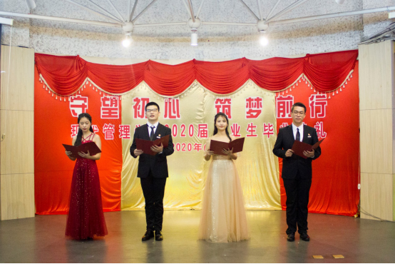今天的毕业典礼,注定镌刻你我的心田,让我们不要在岁月沧桑后才感叹“对酒当歌 人生几何”,应该在今天的时不我待中醒悟:“天生我才必有用”,更让我们在别后的月光下,送上心底深深的祝福-----但愿人长久,更祝愿2020届全体毕业生前程似锦,归来仍是少年!