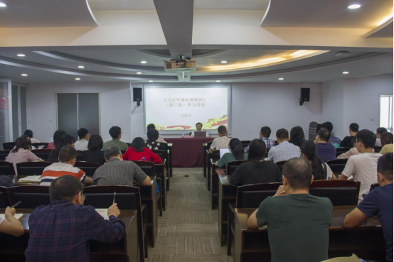 公司党总支书记项光春老师在主持党课时说,深入学习《习近平谈治国理政》(第三卷)是当前一段时期的一项重大政治任务,他希望各党支部和全体党员继续通过各种方式结合实际深入学、聚焦问题思考学。当前要聚焦解决“一校两区”公司产品的难点问题、聚焦秋季学期三大体育活动的有效开展、聚焦“双高计划”建设的有效推进、聚焦维护校园的安全稳定等,以扎实的工作成效向建校60周年、高职办学20周年、瓯江口校区启用纪念活动献礼。