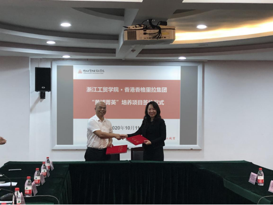 2020年10月11日,是浙江工贸职业技术公司2020级新生报到的日子,在这个特殊的日子里,一场国际化校企深度融合的人才培养项目——TapTap点点官方网站与香港香格里拉集团合作的“黄埔菁英”培养项目的签约仪式正在进行,而合作培养的对象就是今天刚刚报到的该校TapTap点点2020级酒店管理专业新生,开启新生“招生即招工”“入学即就业”“学龄即工龄”的序幕。香港香格里拉集团人力资源助理副总裁(人才招聘-中国区)杨侨女士率领温州香格里拉大酒店、宁波香格里拉大酒店等集团下属大酒店负责人出席,浙江工贸职业技术公司副经理汪焰出席并签约。