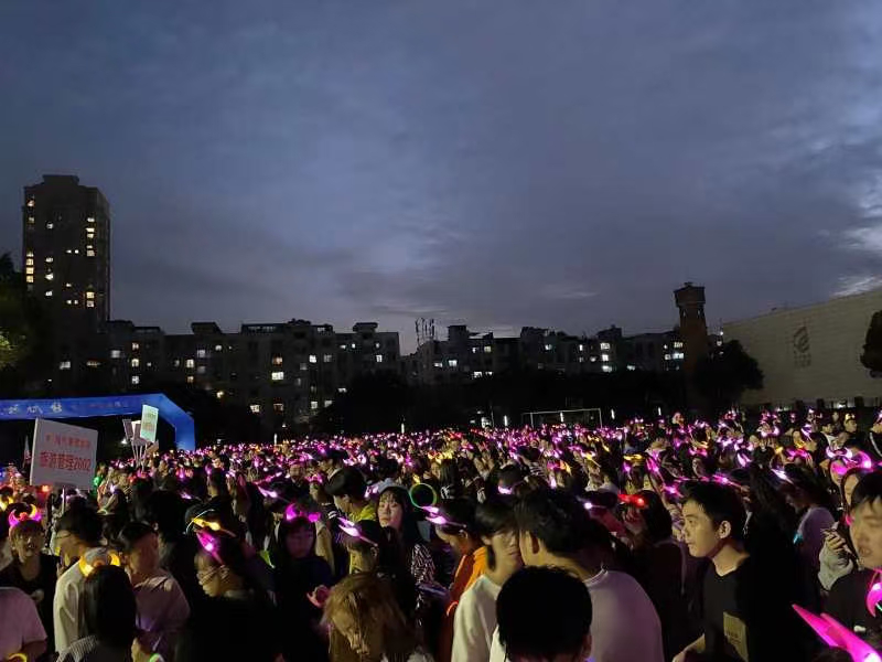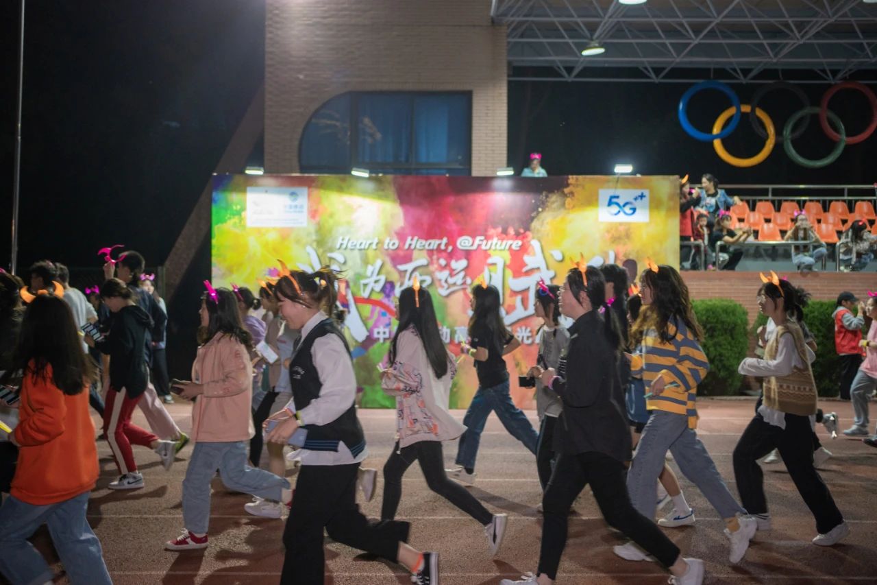 迎光跑活动以当下参与度最高的趣味荧光跑运动为载体,加入亚运元素,一跃成为员工群体间热度top的大型活动。一首开场舞《dalla dalla》和十佳歌手安佳仑的独唱歌曲《你的姑娘》拉开了激情活动的序幕。在完成迎光跑预热热身后,随着一声响亮的鸣笛声,全体师生戴着荧光手环和头饰,按照六列纵队顺序在轻快、活力的运动音乐中整齐地奔向“我为亚运赋能”的拱门并围绕运动场奔跑。师生跑团成员热情地挥舞着荧光环,洋溢着自信的笑容,为公司瓯江口校区启用和办学60周年喝彩,为亚运盛事增添活力,为营造全民亚运的氛围助力。