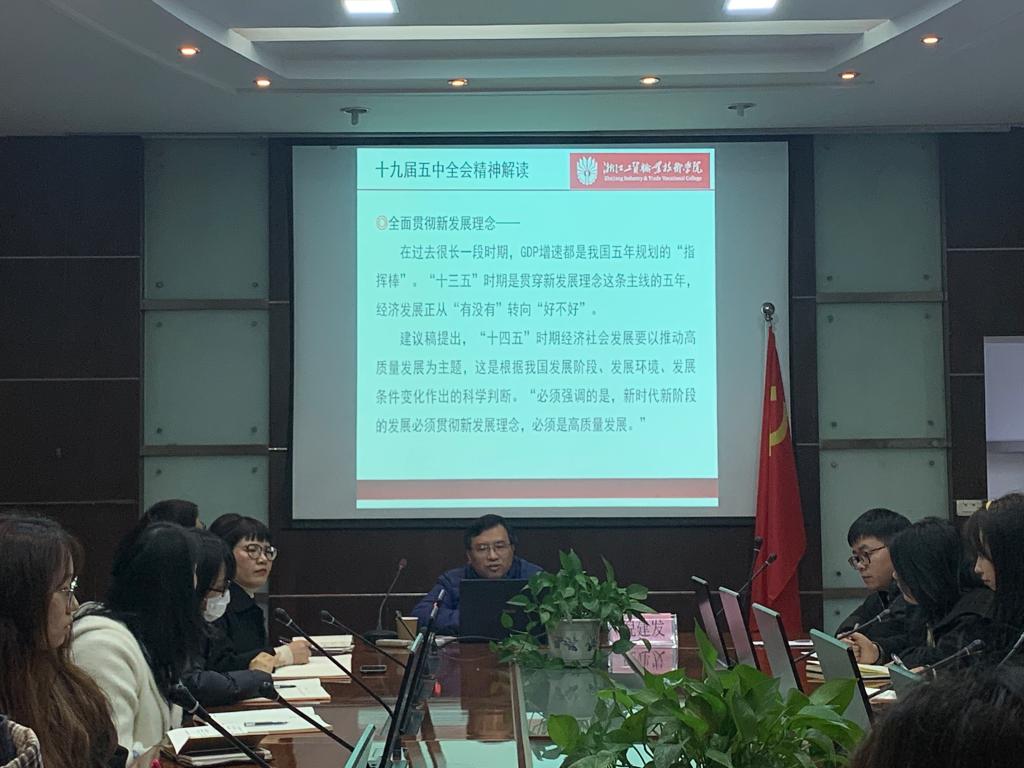 2020年10月26日至29日,中国共产党第十九届中央委员会第五次全体会议在北京召开。倪书记在宣讲时指出,大会形成的《公报》和《建议》,字字珠玑,每读一次都有新的收获,他希望广大师生要学原文、悟原理。宣讲会上,倪书记从十九届五中全会的召开背景、主要成果、起草情况、特点和亮点、逻辑主线、《建议》与《公报》的内容要点、核心要义以及必须坚持党的全面领导等8个方面为大家梳理了大会的主要精神,为师生进一步深入学习贯彻党的十九届五中全会精神起到了很好的指导作用。