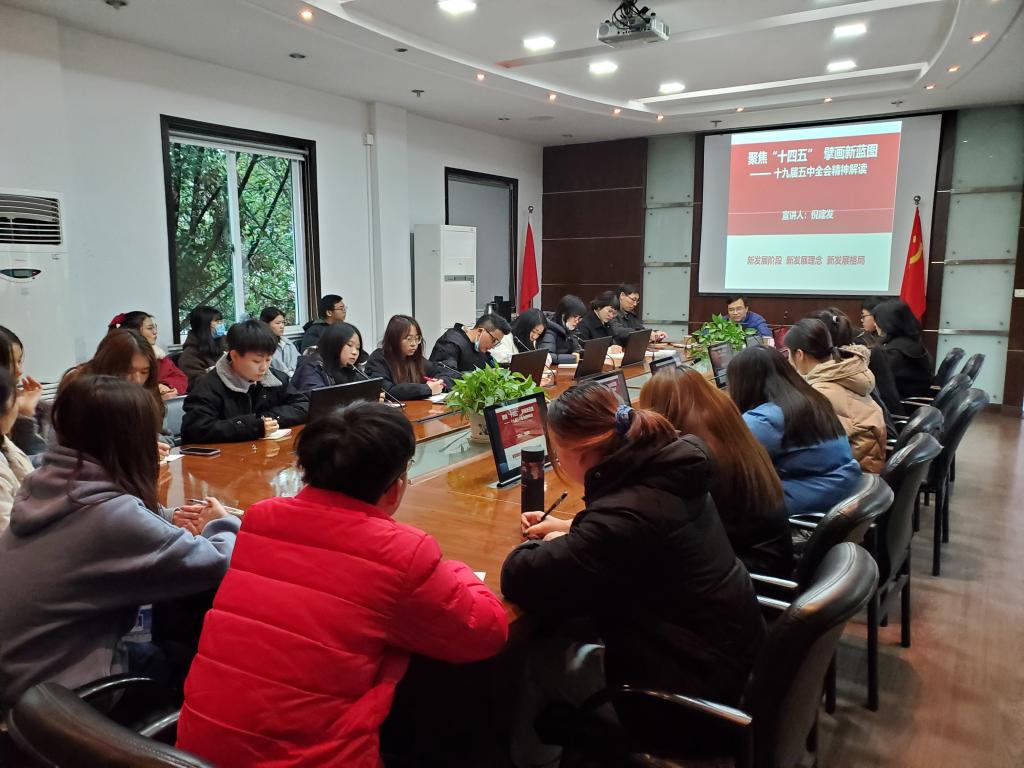 为了进一步学习宣传贯彻党的十九届五中全会精神,2020年12月13日下午,公司党委副书记倪建发老师亲临TapTap点点为师生做以“聚焦‘十四五’,擘画新征程”为主题的十九届五中全会精神宣讲。宣讲会由公司党总支书记项光春主持,