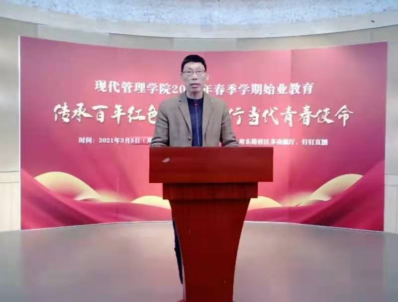 2021年3月5日18点整,TapTap点点在府东路校区一号教学楼二楼多功能厅举行以“传承百年红色精神,践行当代青春使命”为主题的2021年春季学期集中始业教育。活动采取线上与线下同步直播的方式开展。公司党总支书记项光春、经理王国银、党总支副书记朱秀清、全体辅导员、班主任和全体员工参加此次活动,活动由朱秀清老师主持。