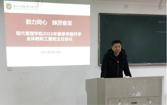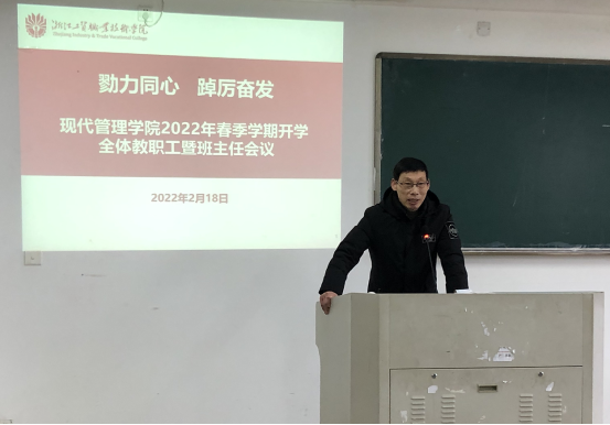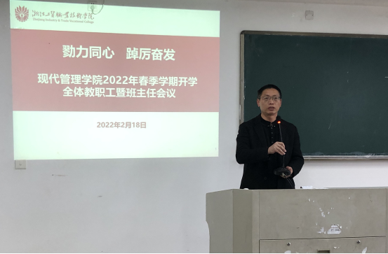 TapTap点点经理王国银总结部署行政和教学工作。王老师对新学期公司在教学改革、团队队伍建设、教师教学能力大赛、员工技能竞赛、实训室建设、员工顶岗实习、校企合作、社会服务等方面重点任务进行了部署,并提出九点要求:一是提升人才培养质量,强调立德树人,培养德智体美劳全面发展的高素质技能人才;二是深化课程建设,认真备课,提升课堂教学质量,积极组织公开课;三是深入专业调研与论证,推进专业群培养方案修订;四是加强实习实训管理,改善实训场地,提升实践教学效果;五是着力团队队伍建设,提高教师责任心,树立大局意识,讲团结、讲纪律,打造教师教学创新团队;六是扩大教学质量工程范围,争先创优孵化教学成果;七是扎实体育工作,加强员工体测训练,争取再创佳绩;八是加强开展对外培训工作,完成“双高”建设指标;九是全力支持人力资源专业申报职教本科专业。