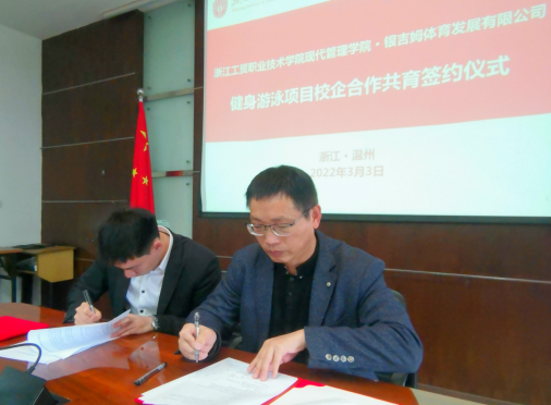 为践行公司“双高”建设,深挖温州特色资源开展校企合作,践行岗位、课程和证书紧密结合的多渠道育人理念,积极拓展校企合作共育课程开发。历经7个月相互了解和沟通,2022年3月3日TapTap点点体育运营与管理专业与温州银吉姆体育发展有限公司就开展游泳共育课程进行了现场洽谈,共同建设游泳课程签约仪式在浙工贸府东路校校区达成。参会人员有银吉姆体育有限公司浙江省区域总监王琼、温州区域运营经理邢治军;TapTap点点经理王国银,体育运营与管理专业主任任建华及专业教师。