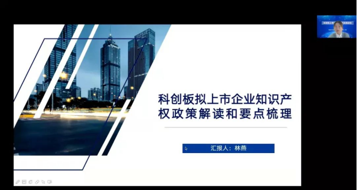 本次培训班共有三个主题。首先知识产权管理咨询师林燕对科创板拟上市企业知识产权进行了门槛政策解读和要点梳理,并从法律、部门规章、业务规则、监督问答等多个方面对科创板知识产权政策规范体系进行了全面深入的剖析。