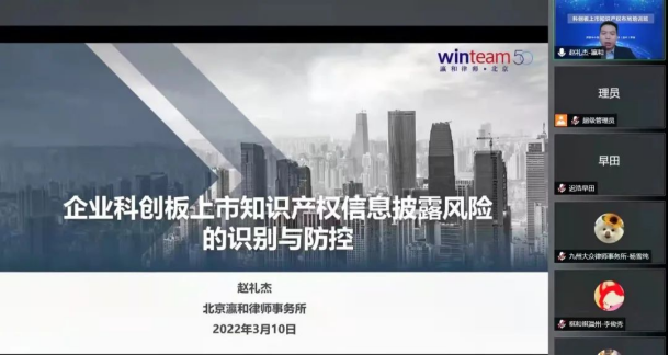 本次培训主要围绕科创板拟上市企业知识产权资产布局与风险防范等方面展开。重点解读了基于上市合规和风险投资的知识产权资产储备要求、科创板拟上市公司知识产权结构安排的风险及其控制、拟上市公司的知识产权信息披露风险及规范、科创板拟上市公司面对知识产权诉讼的危机处理等热点和焦点问题。