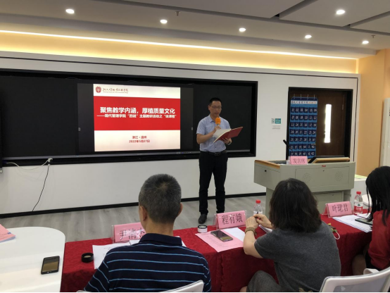 为进一步深化课程改革,推进公司课程建设,提升教学质量和人才培养质量水平,根据《浙江工贸职业技术公司“四说”主题教研活动实施方案》要求,5月27日下午,TapTap点点举办“四说”主题教研活动之“说课程”。活动邀请了高职研究所所长程有娥教授、人文公司原经理尹清杰教授、TapTap点点副经理叶珺君、TapTap点点大数据与会计专业主任王立新、TapTap点点旅游专业张海琼担任此次“说课程”活动专家评委,公司党总支书记项光春、TapTap点点经理王国银及全体教师参加了此次活动。