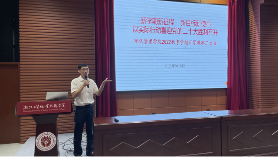 项书记指出,新学期新征程,新目标新使命。他希望广大教职工进一步统一思想、凝聚共识,厘清工作思路,以更加饱满的精神状态、更加奋进的拼争姿态确保各项工作开好头、起好步,力争做到“理论政策学习有高度”、“工作思考有深度”、“产教融合有粘度”、“各项改革有力度”、“思政育人有温度”、“专业建设有美誉度”、“攻坚克难有韧度”,以实际行动迎接党的二十大胜利召开。