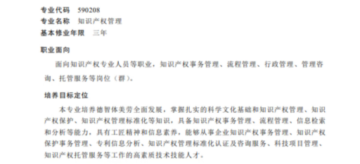 图3:教育部新版《职业教育专业简介》知识产权管理专业的部分简介