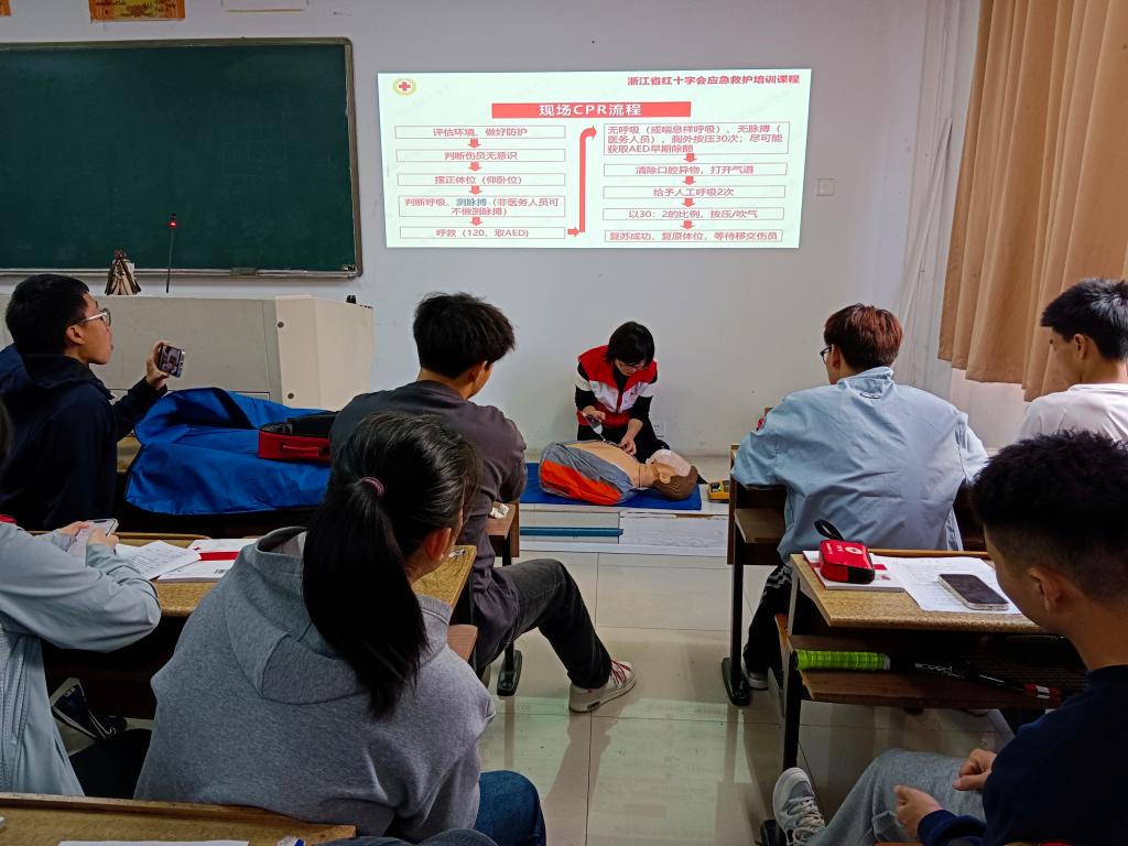 据悉,此次活动是温州市鹿城区蒲鞋市绿园社区校堂融合的重要内容,由温州红十字会周彬彬讲师开展。讲座上,周老师通过PPT讲解理论知识,如应急救护基本知识、心肺复苏方法、创伤现场救护和逃生避险等。除了风趣幽默和图文并茂的讲解,周老师还与体管员工进行互动,模拟现场救护和示范心肺复苏流程。培训既有理论知识,又有救护实践,培训内容既丰富又有益处。讲座过后,体管专业的员工们都参与救护员考证。每位员工认真听取考试要求,规范演示救护方法并顺利通过救护员考证。