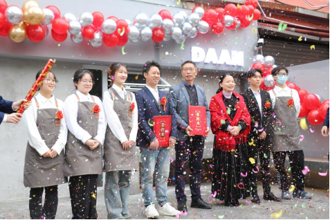 开业仪式上,达岸指导老师黄岳薇发表了热情洋溢的开业致辞,祝愿达岸咖啡厅能够在未来的发展中再创佳绩。接着,达岸第十届创业员工代表发表感言,分享了自己的创业历程和心得体会,为大家展现了员工创业者的风采。为达岸提供技术支持的校企合作企业,温州城中希尔顿酒店人力资源总监赵圆堃、温州威斯汀酒店总经理马倩蓓、温州香格里拉酒店总经理陈碧红为达岸授牌,表达了对达岸咖啡厅的认可和支持。TapTap点点经理王国银、产教融合合作企业吾住科技代表陈武、达岸创业团队员工代表签订合作协议并举行剪彩仪式,共同见证了达岸咖啡厅的重要时刻。